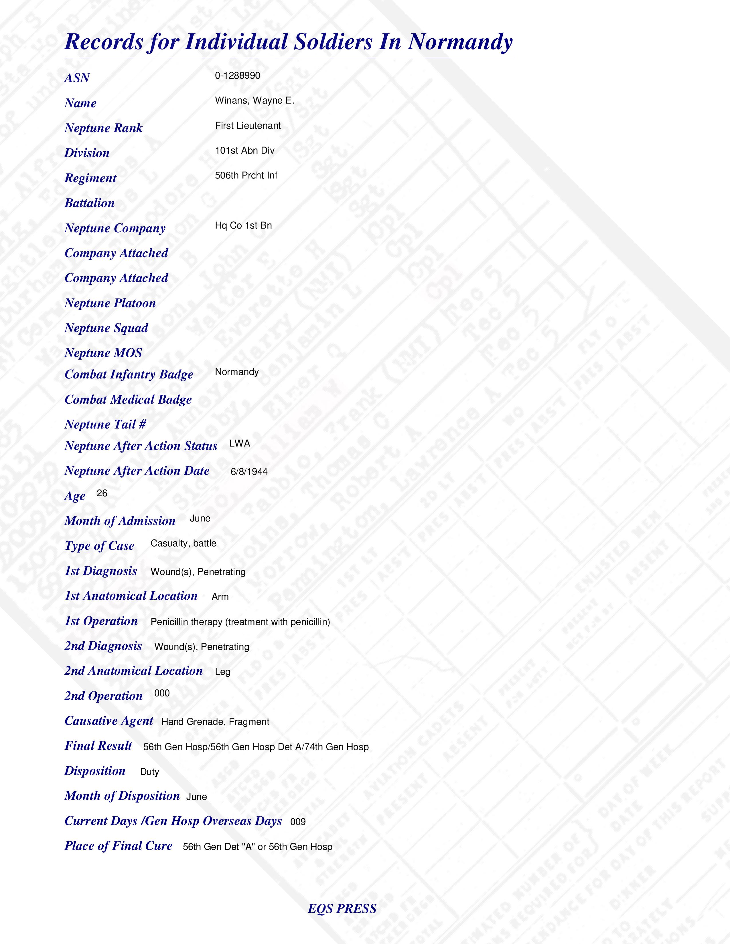 1st Lt Wayne E. Winans Hq Co 1st Bn 506th