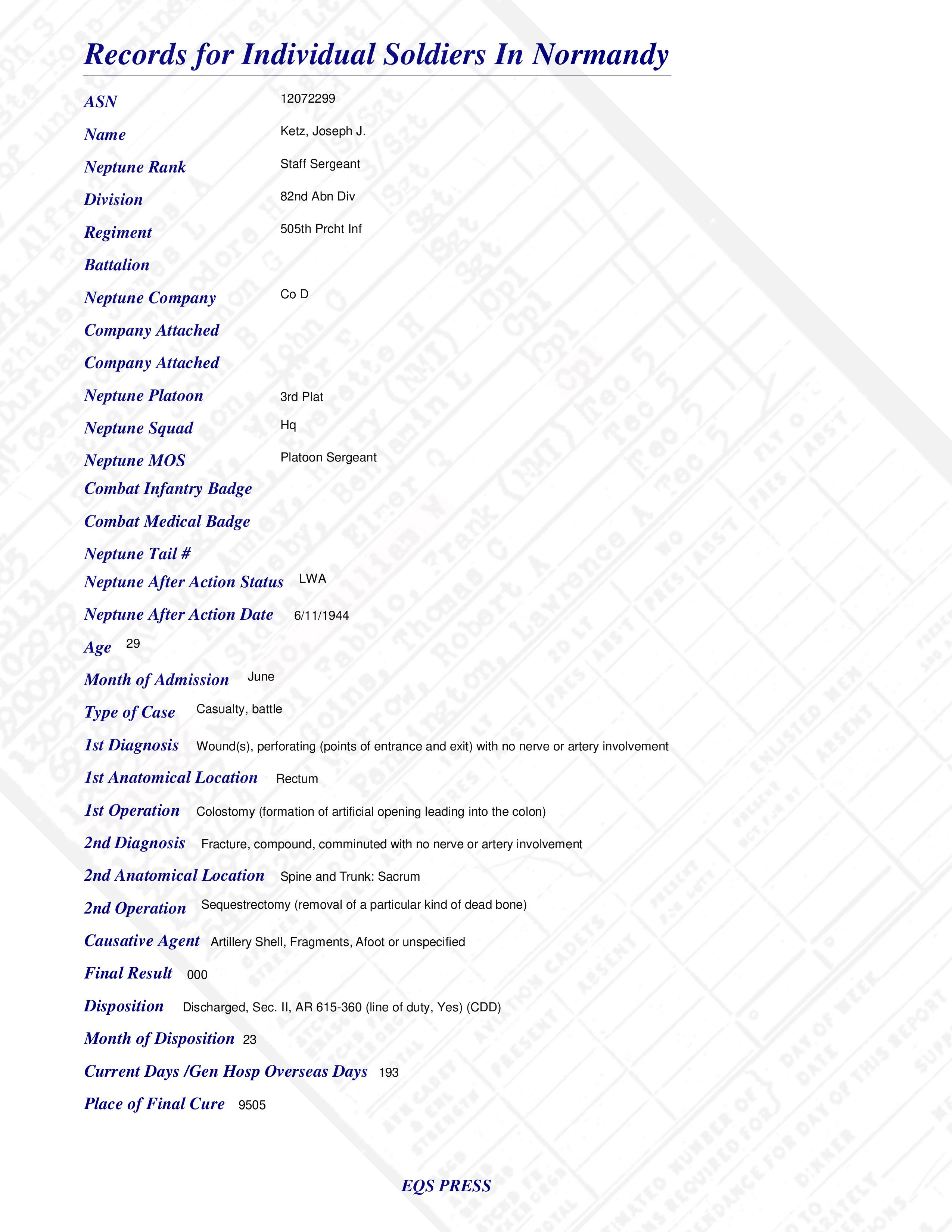 S/Sgt Joseph J. Ketz 3rd Plt Co D 505th