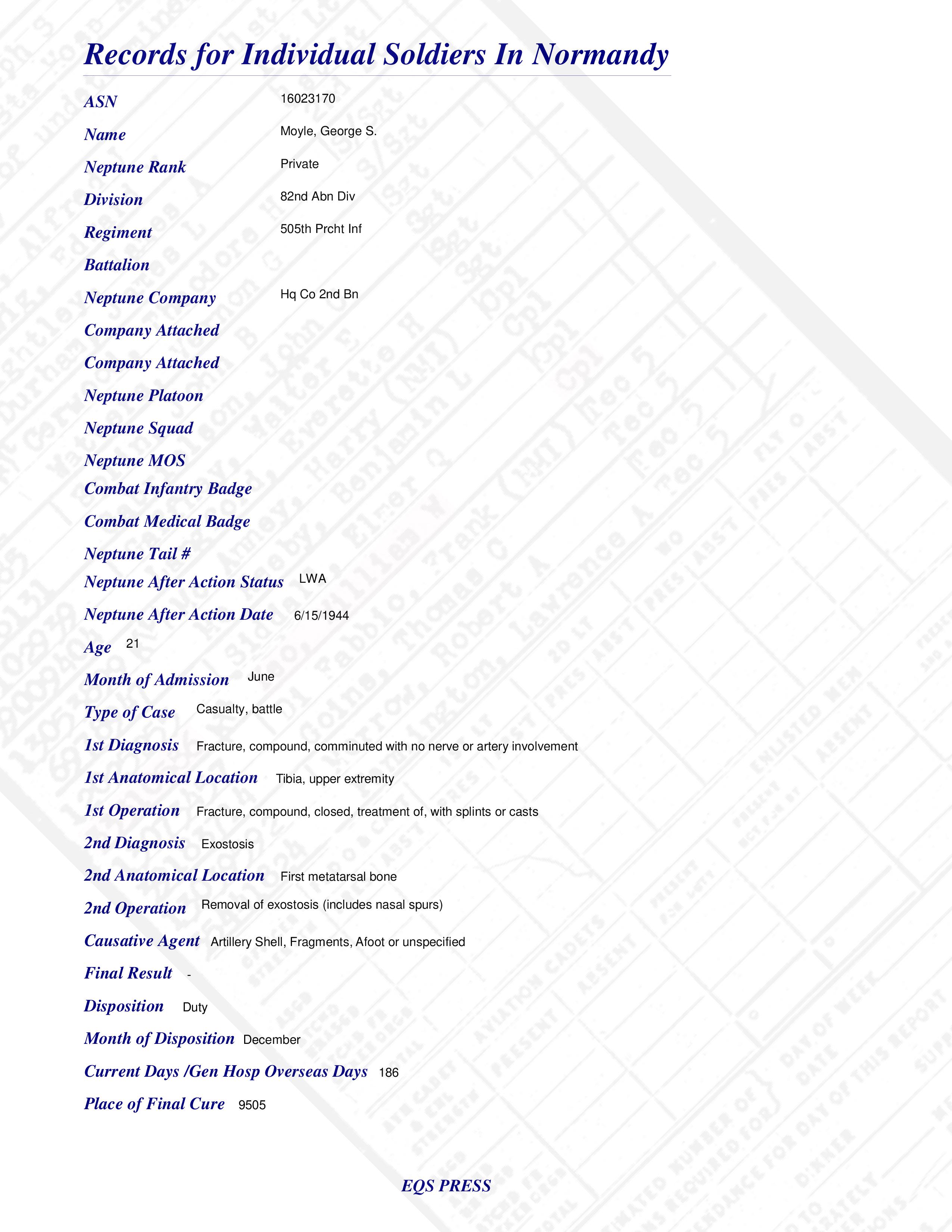 Pvt George S. Moyle Hq Co 2nd Bn 505th Prcht