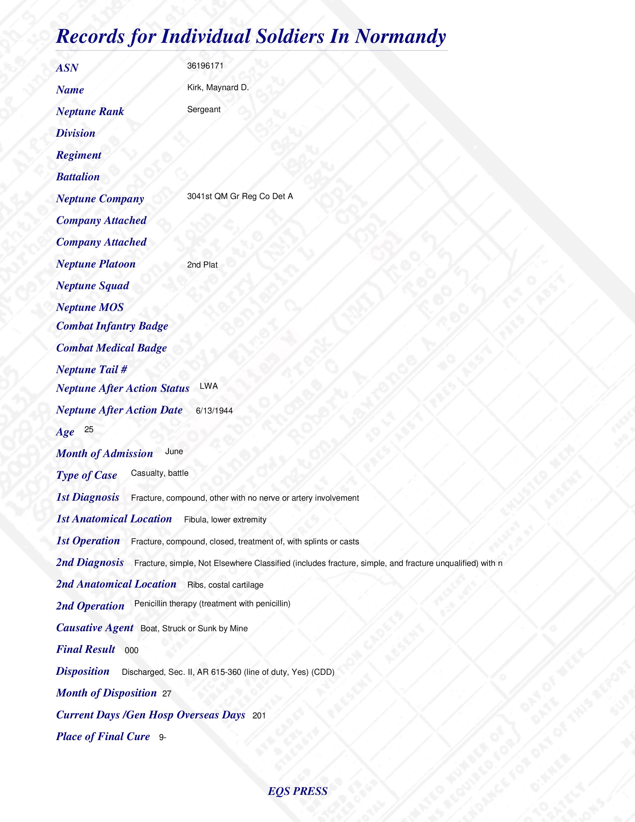 Sgt Maynard D. Kirk 2nd Plt 3041st QM Gr Reg