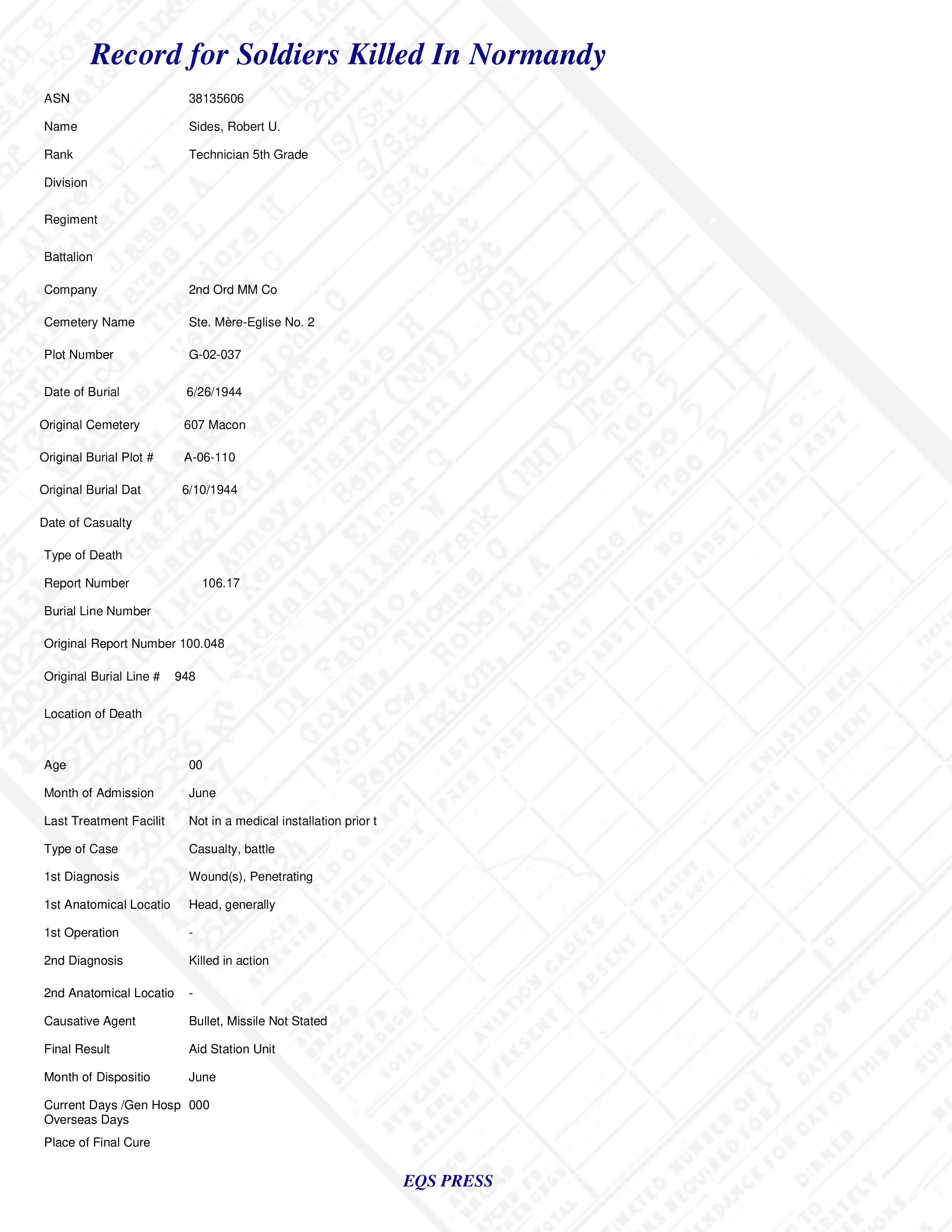 Pvt Ellis S. Abney Medic, Med Det Hq Co 2nd