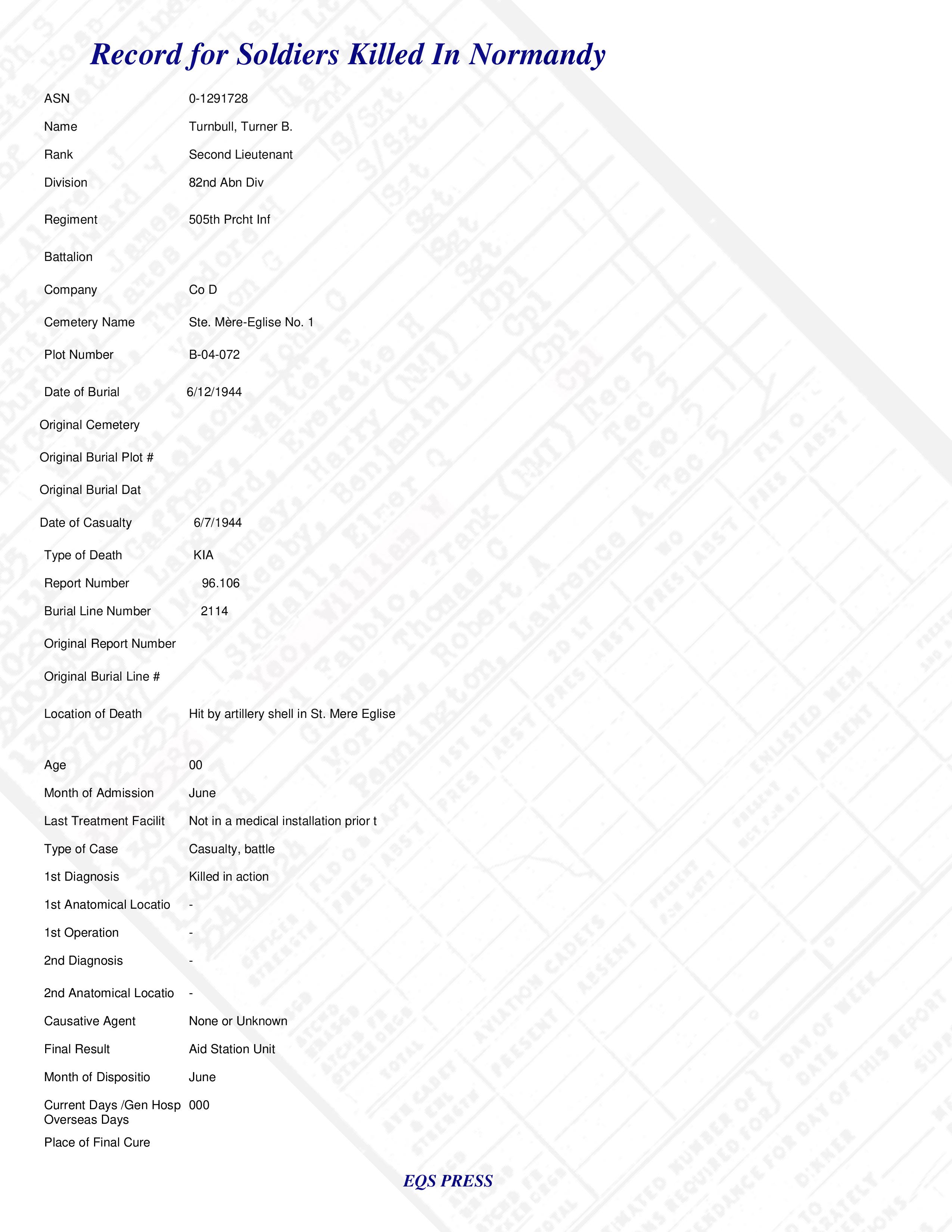 1st Lt Turner B. Turnbull 3rd Plt Co D 505th