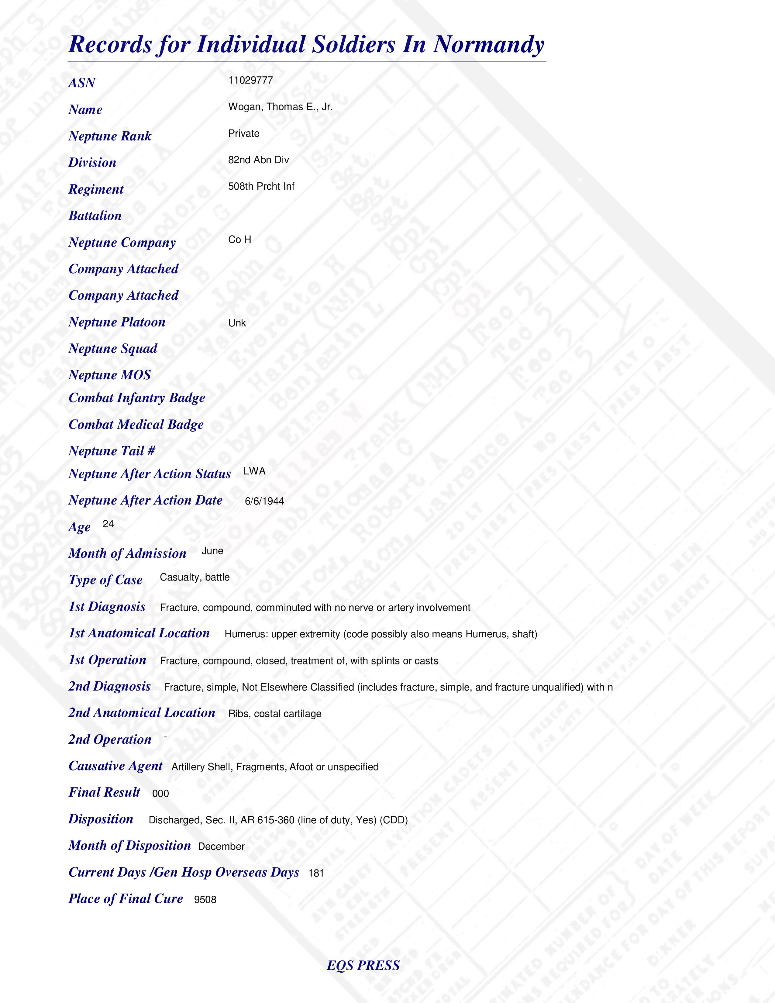 Pvt Thomas E. Wogan Jr. Co H 508th Prcht Inf