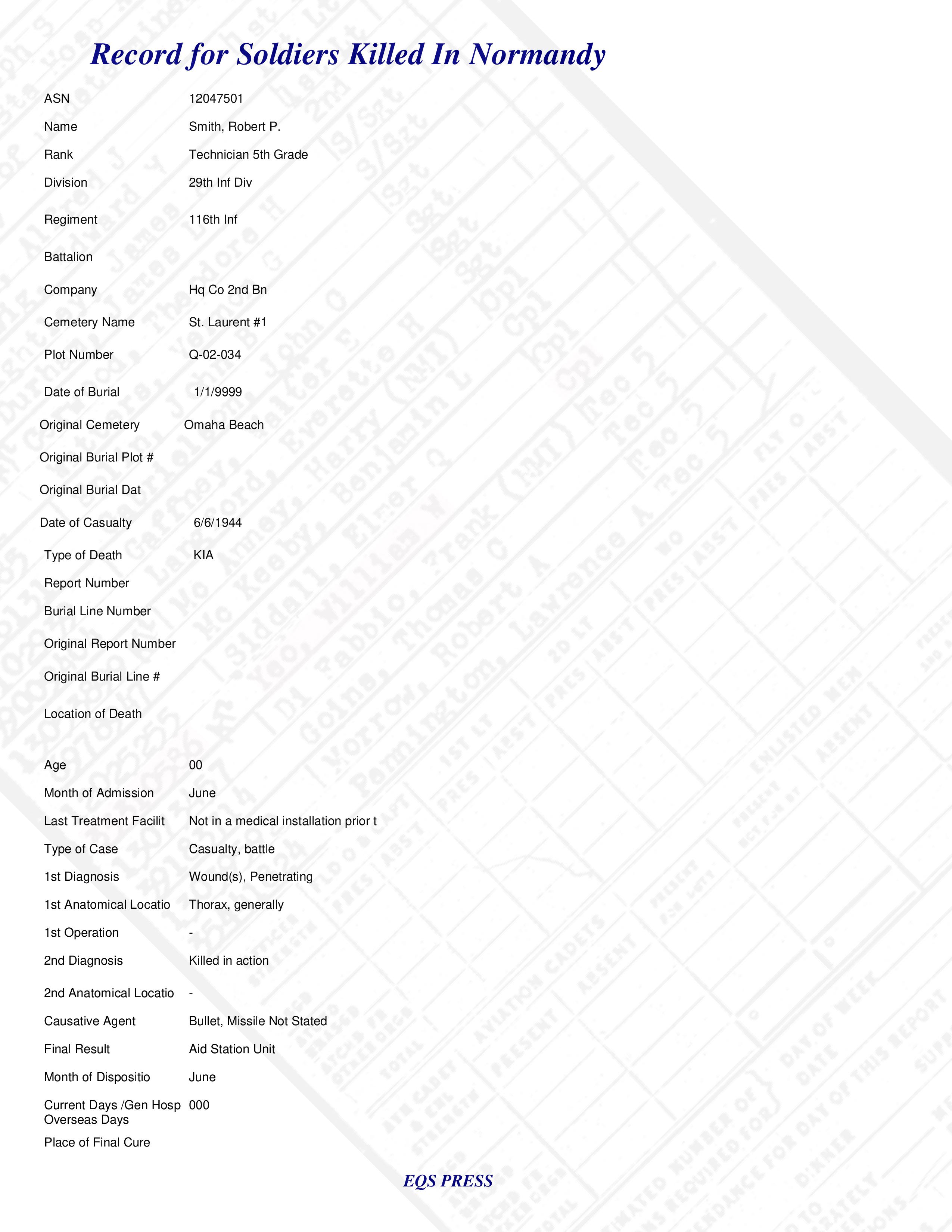 T/5 Robert P. Smith Hq Co 2nd Bn 116th Inf