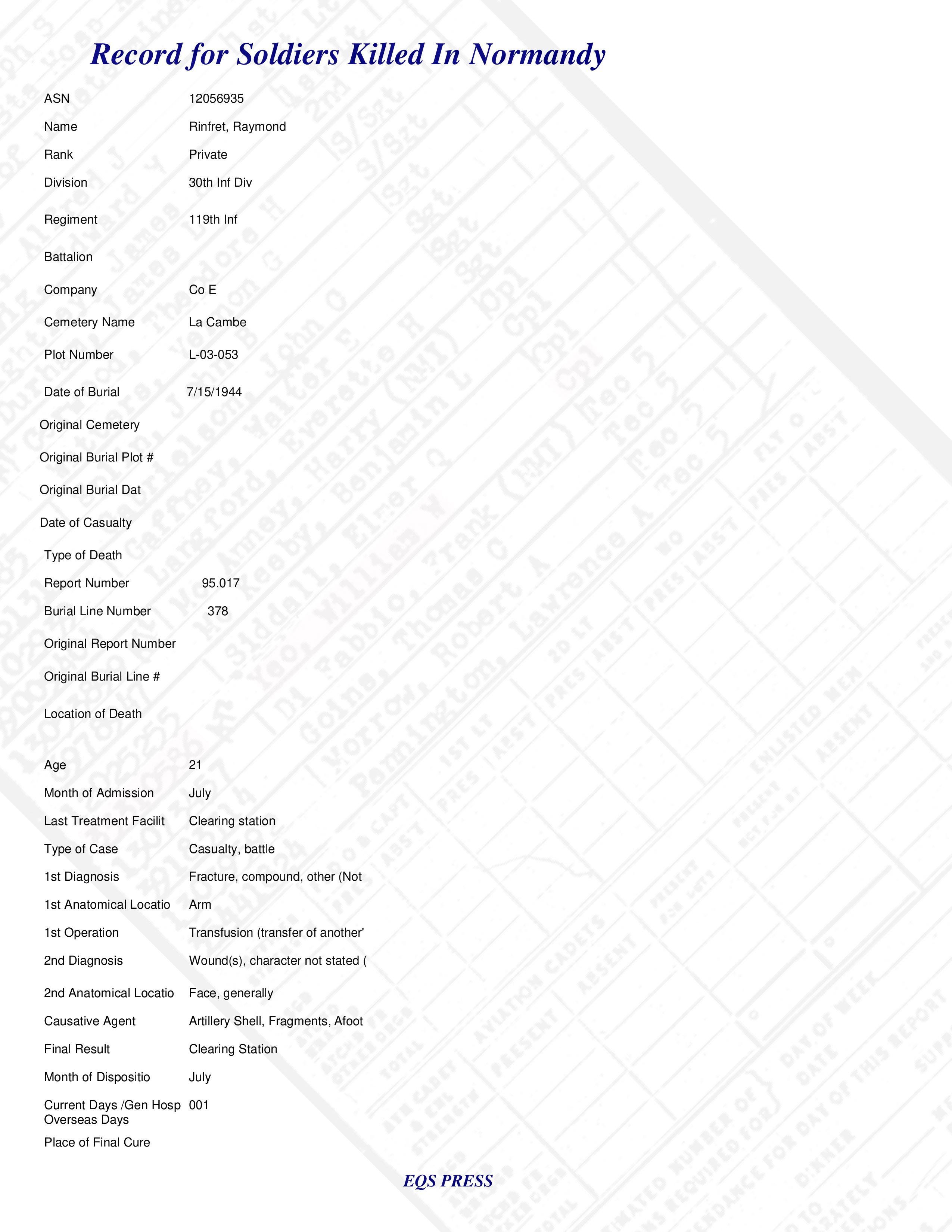 Pvt Raymond Rinfret Co E 119th Inf 30th Inf