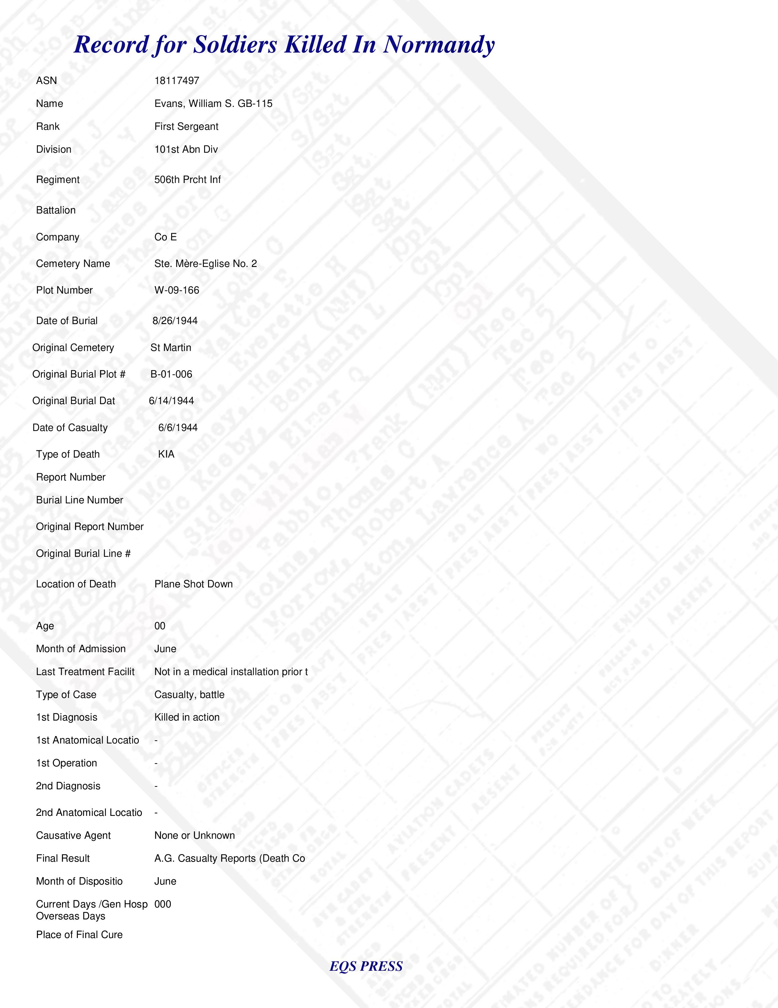 F/Sgt William S. Evans Co E 506th Prcht Inf