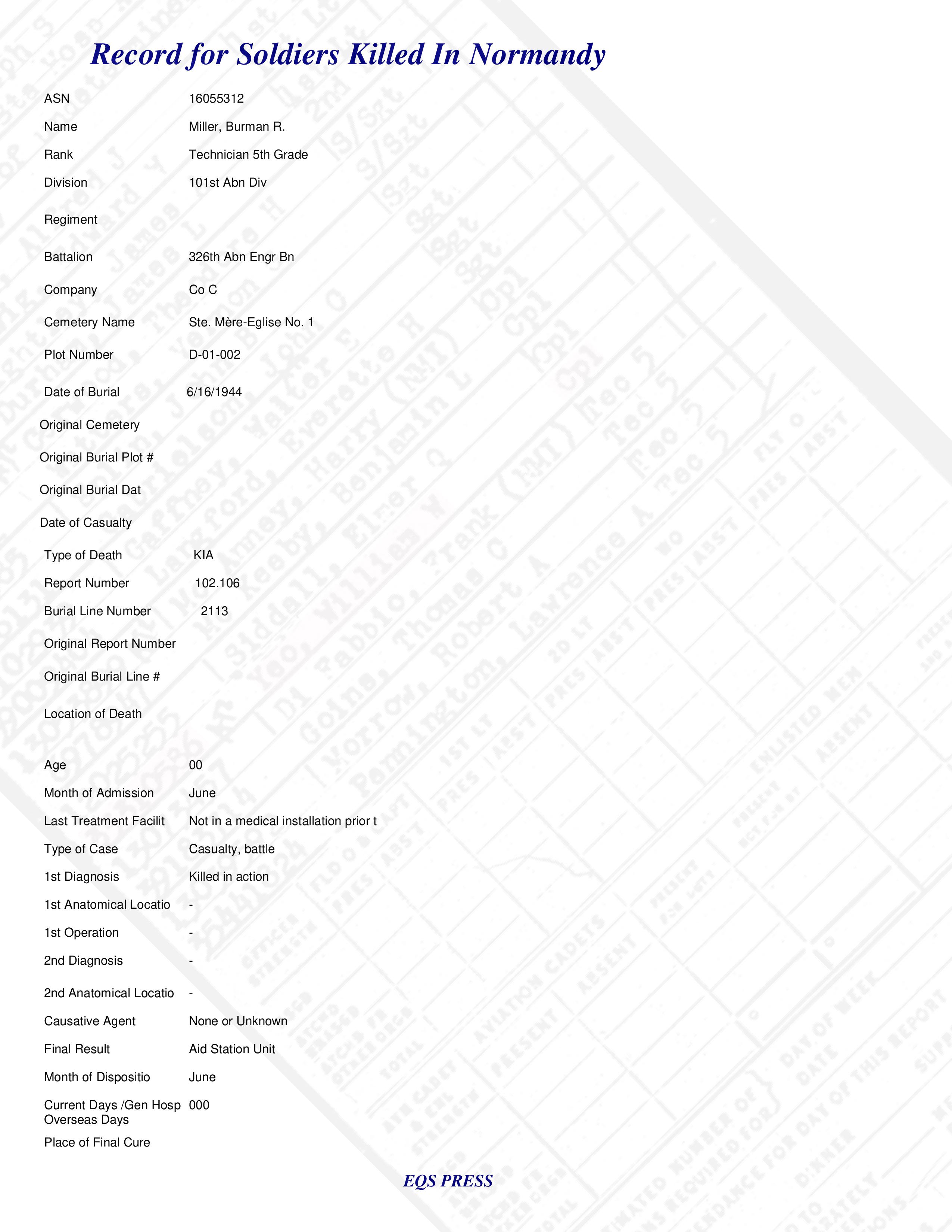 T/5 Burman R. Miller Co C 326th Abn Engr Bn