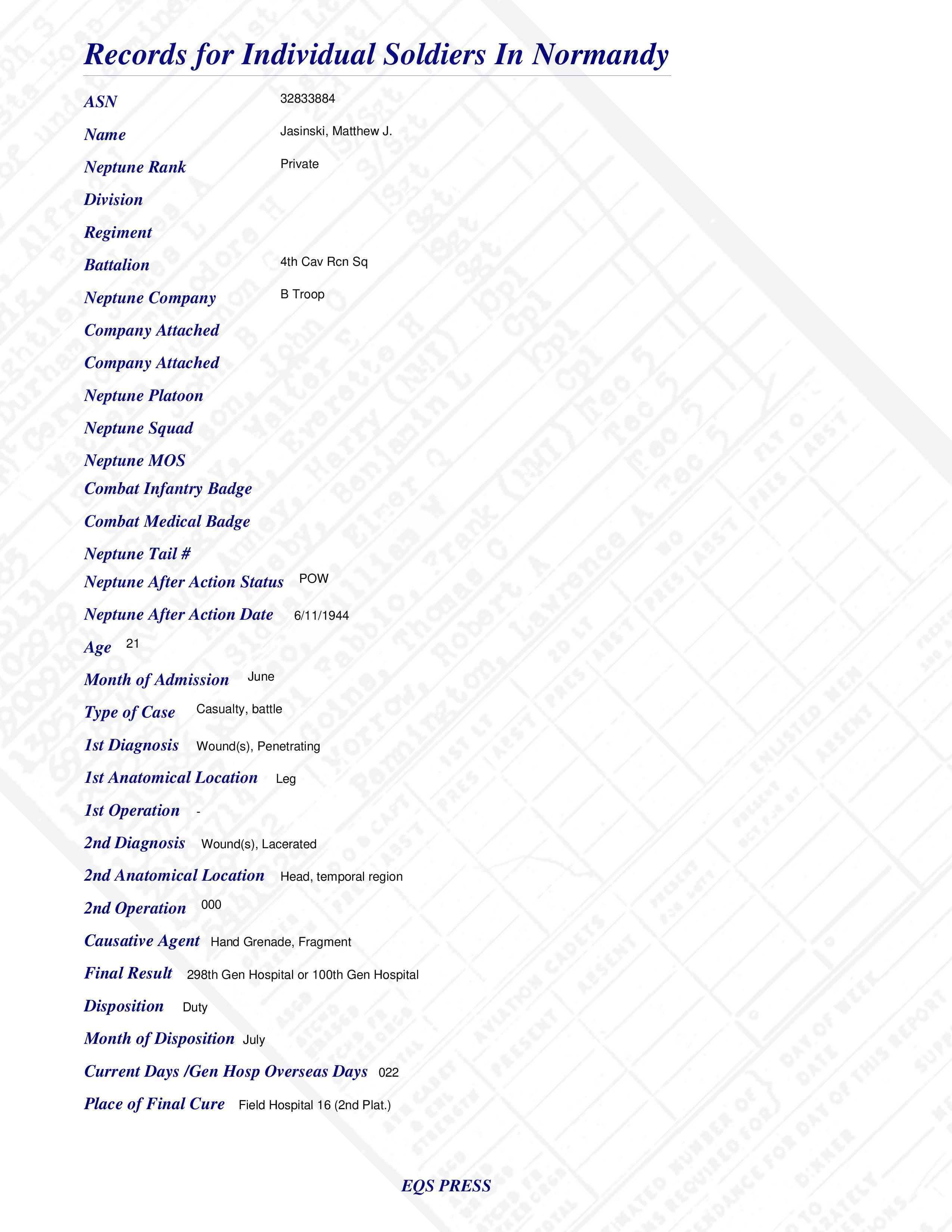 Pvt Matthew J. Jasinski B Troop 4th Cav Rcn
