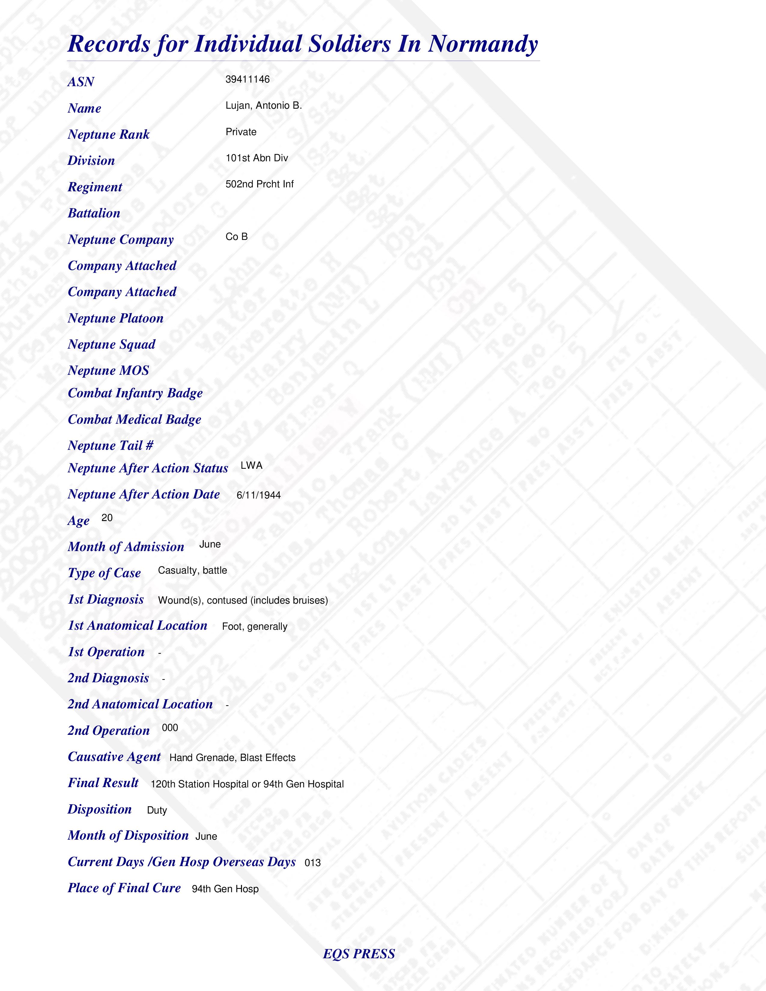 Pvt Antonio B. Lujan Co B 502nd Prcht Inf