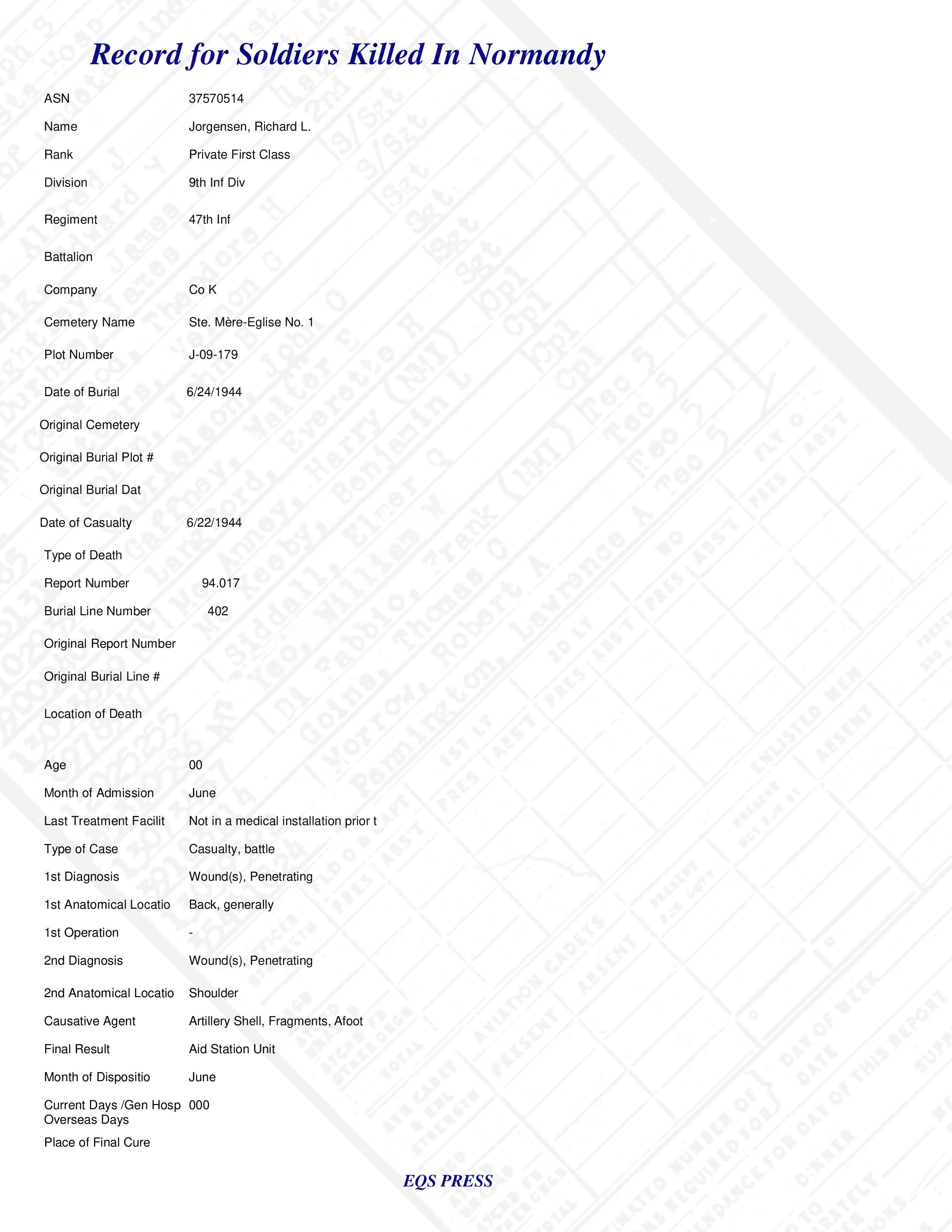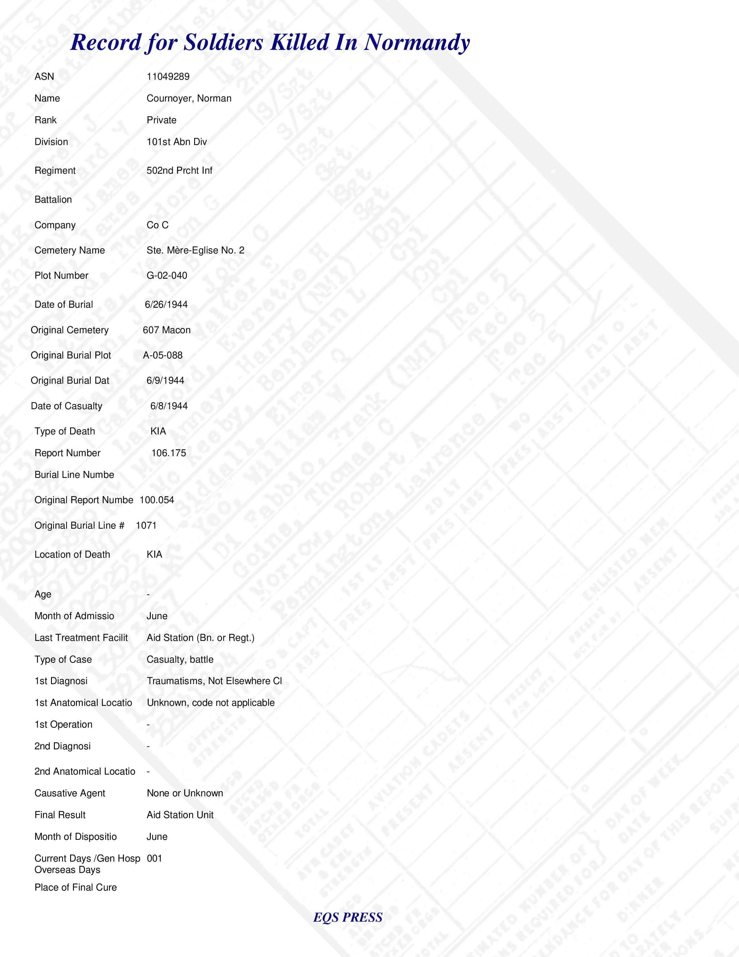 December 2026 Normandy Soldier of the Day